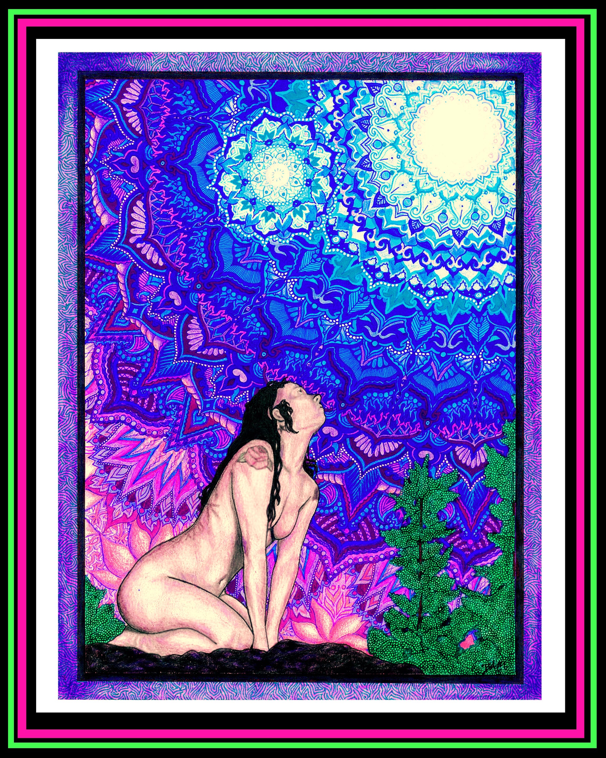 The neon frame is for website presentation only. Your print ends at the outer edge of the white border.