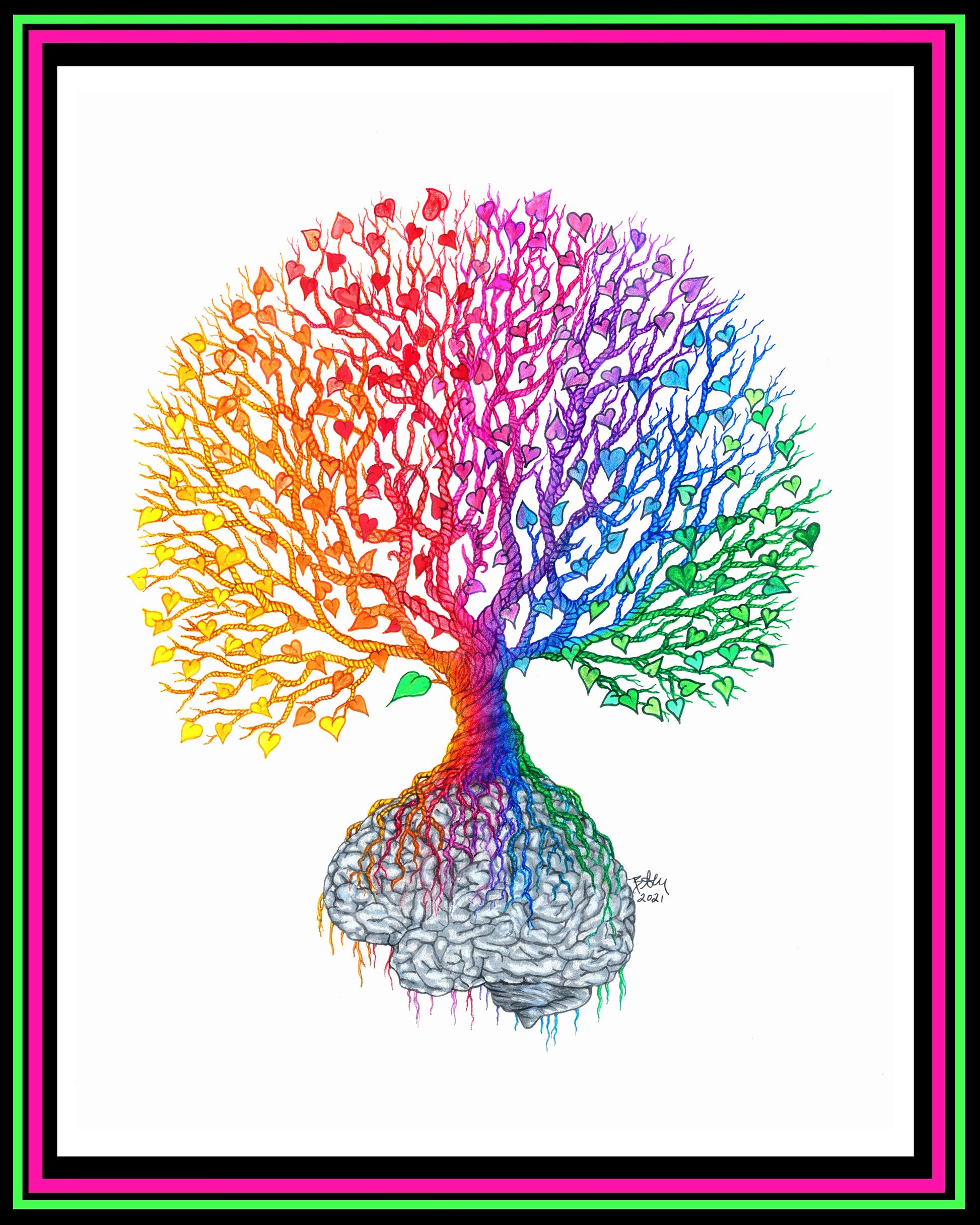 The neon frame is for website presentation only. Your print ends at the outer edge of the white border.