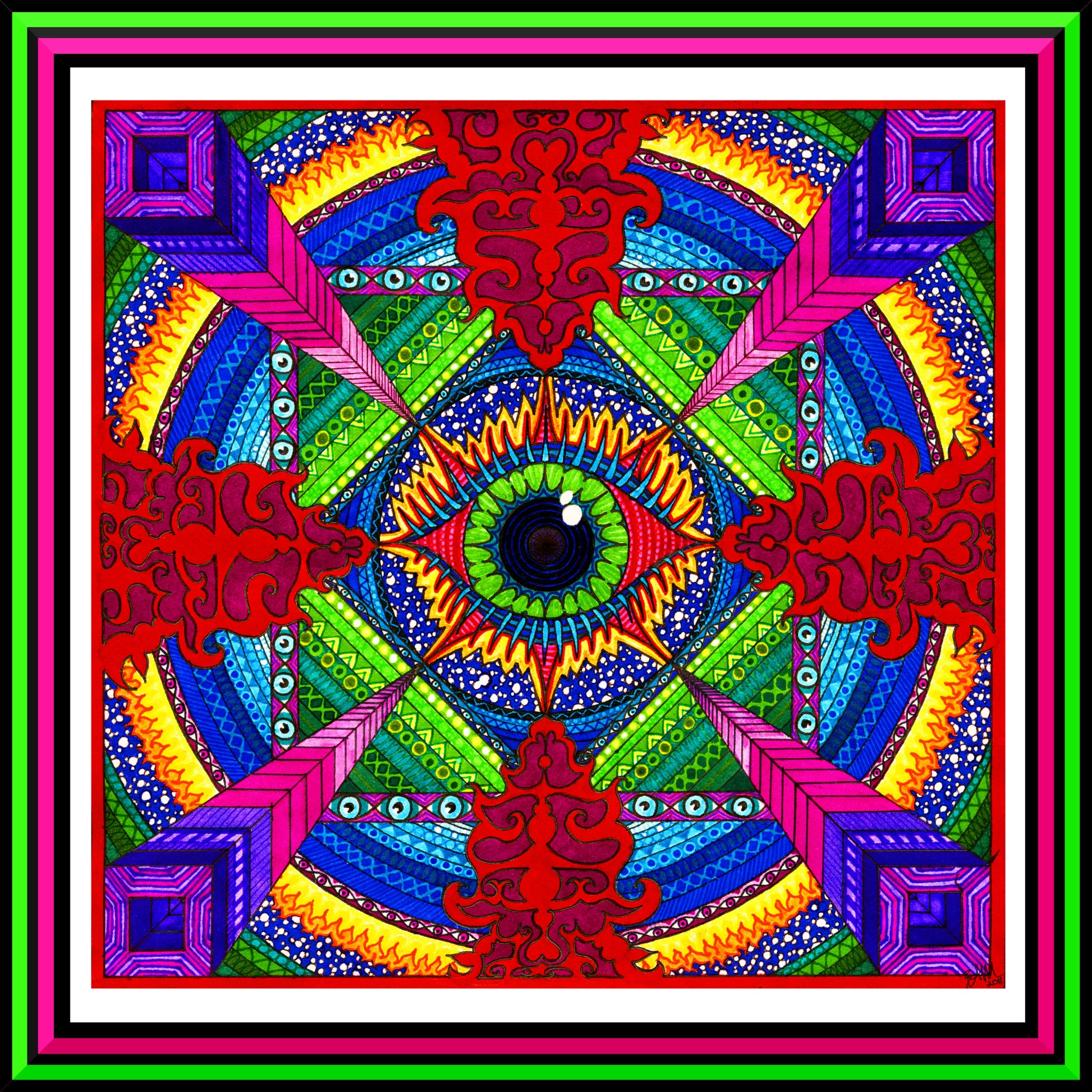 The neon frame is for website presentation only. Your print ends at the outer edge of the white border.